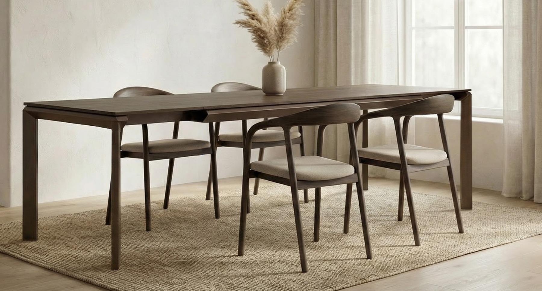 Rozkládací jídelní stůl YERBA je jedinečný kus nábytku, který spojuje funkčnost s moderním designem – ideální volba pro vaši jídelnu...