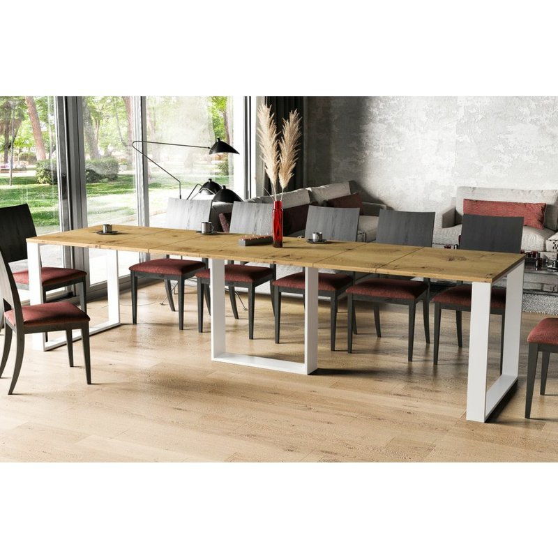 Stůl se rozkládá postupným přidáním až 3 přídavných desek (každá 60 cm). Rozkládání je jednoduché a délku přizpůsobíte počtu hostů. Masivní konstrukce a stabilní středová podnož zajistí pevnost i při maximálním rozložení a přitom nikomu při sezení nepřekáží. Přídavné desky nelze uchovávat pod hlavní deskou stolu.