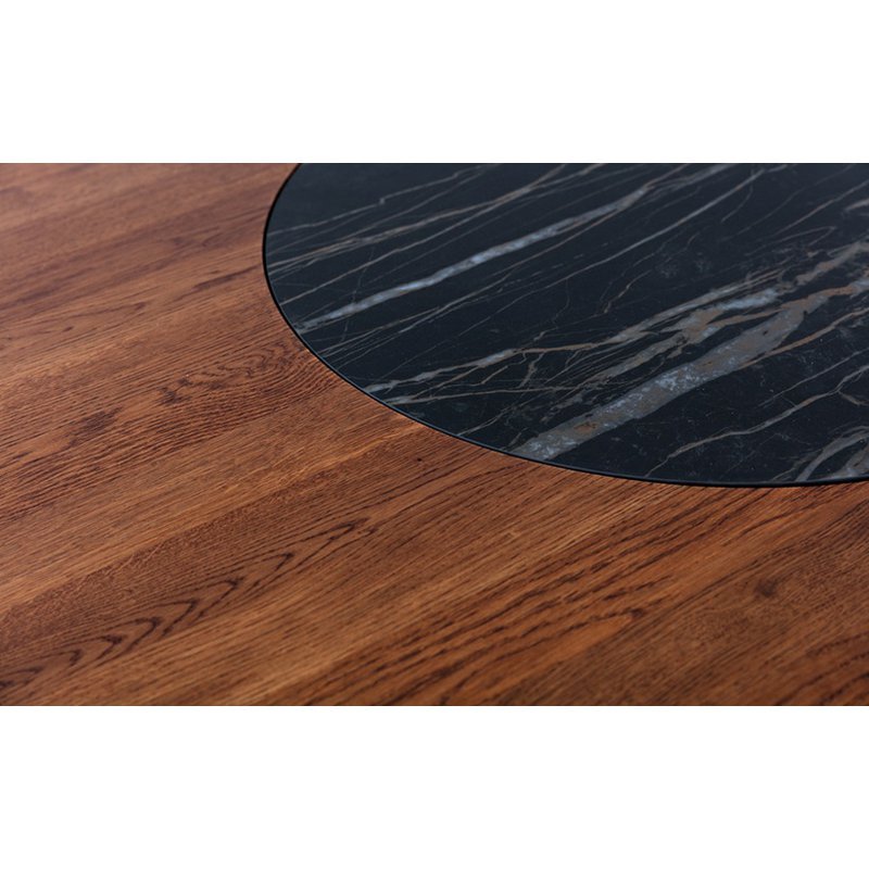 Kulatý jídelní stůl Orio z dubového masivu s otočnou deskou ze slinuté keramiky Laminam dodá interiéru punc exkluzivity. Velký výběr odstínů dřeva i keramiky!