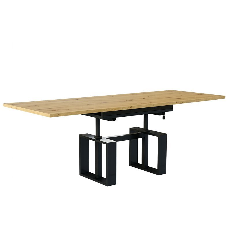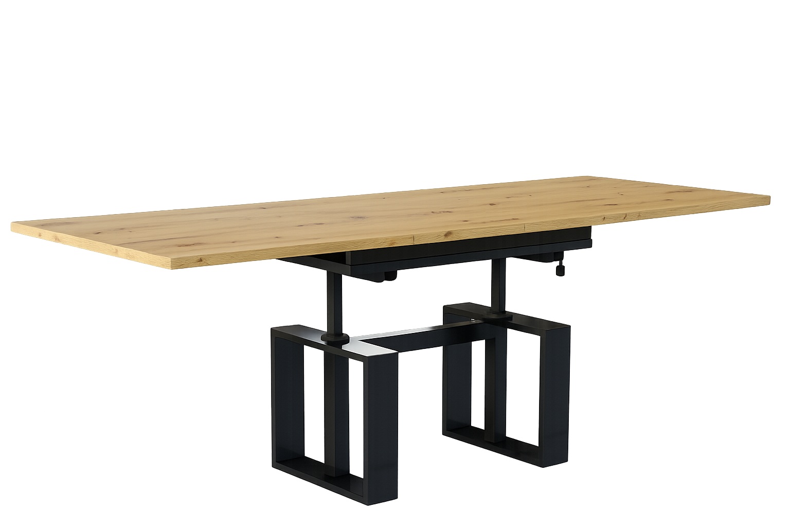 Rozkládací a zvedací konferenční stolek Empoli se díky výrazné kovové podnoži skvěle hodí zejména do industriálních interiérů. Změnou výšky a rozměru konferenční stolek lehce přizpůsobíte svým aktuálním potřebám. Během chvilky může být z konferenčního stolku jídelní stůl. Výška konferenčního stolku může být 58-75 cm a rozměr stolku z původních 110 cm může být zvětšen až na 170 cm.