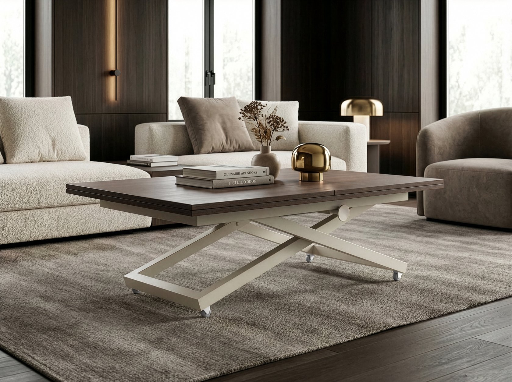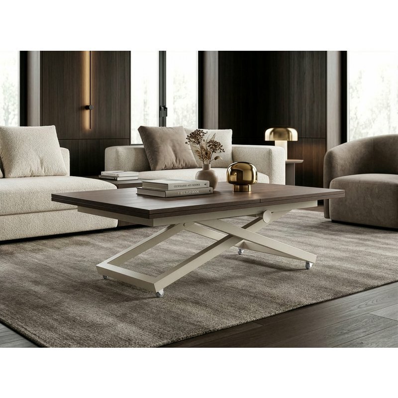 Konferenční stolek Zaria je chytré řešení pro moderní domácnosti, kde je potřeba maximálně využít prostor. Na první pohled působí jako elegantní konferenční stolek, během chvilky se ale promění na plnohodnotný jídelní stůl.