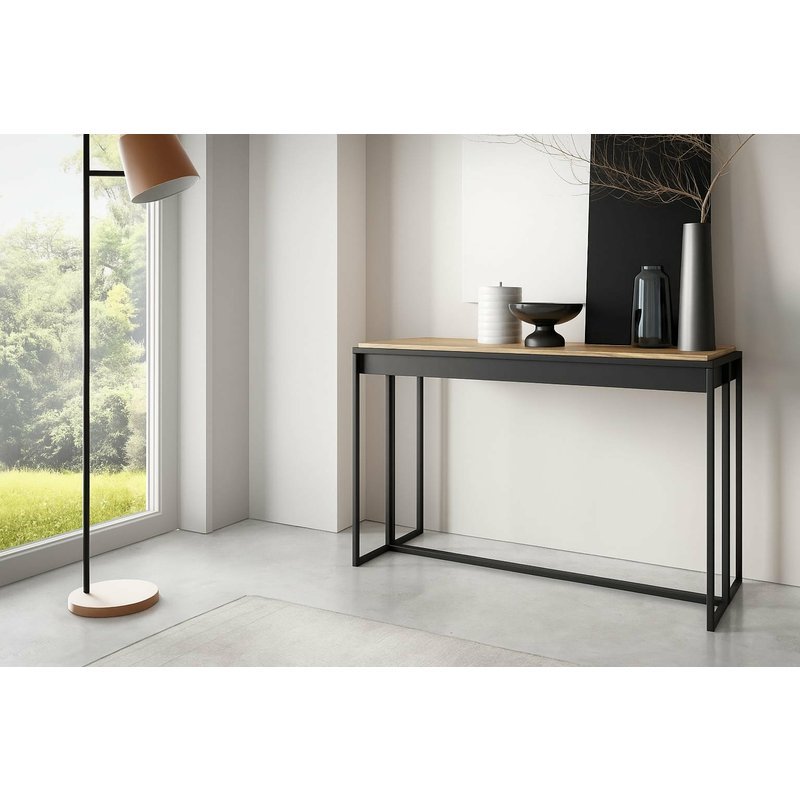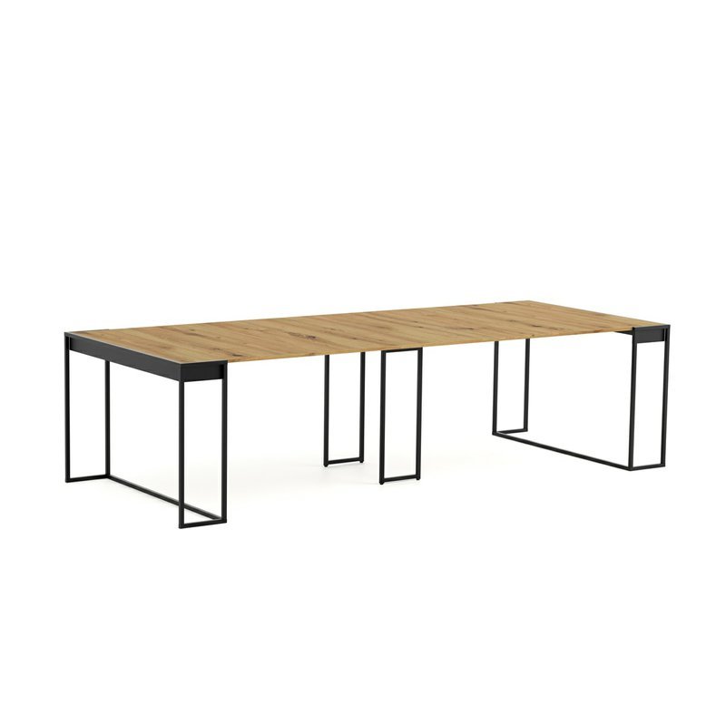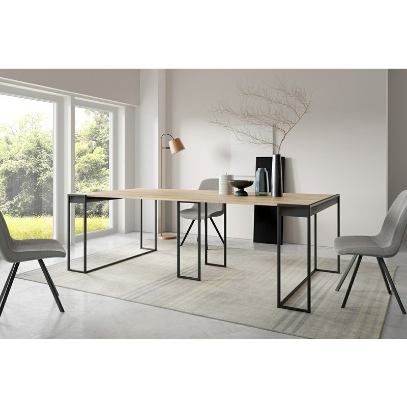 Konzola Areno je perfektní ukázkou toho, jak může jeden kus nábytku zásadně změnit fungování vašeho interiéru. Na první pohled elegantní konzola, která zabírá minimum místa, se ve chvíli, kdy ji potřebujete, promění v plnohodnotný jídelní stůl o délce až 300 cm. Díky promyšlenému rozkládacímu systému a pěti přídavným deskám získáte maximální flexibilitu – od kompaktní konzoly do chodby až po velký stůl pro společné chvíle. Minimalistický loftový design navíc skvěle zapadne do moderních, industriálních i skandinávských interiérů.