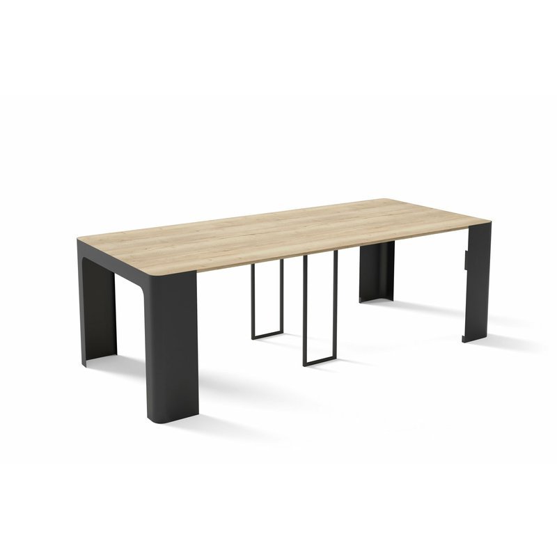 Úzký konzolový stolek se rozkládá pomocí 5 přídavných desek, které se postupně vkládají mezi hlavní části stolu na zesílené vodící lišty. Aby se rozložený konzolový stůl neprohýbal, je navíc vybaven středovými nohami. Můžete používat libovolný počet přídavných desek.